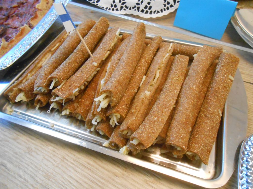 Die Käsescheiben längs oder quer (geht einfacher) zu Röllchen formen und über Nacht trocknen lassen.