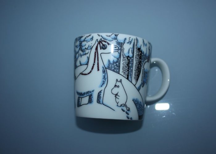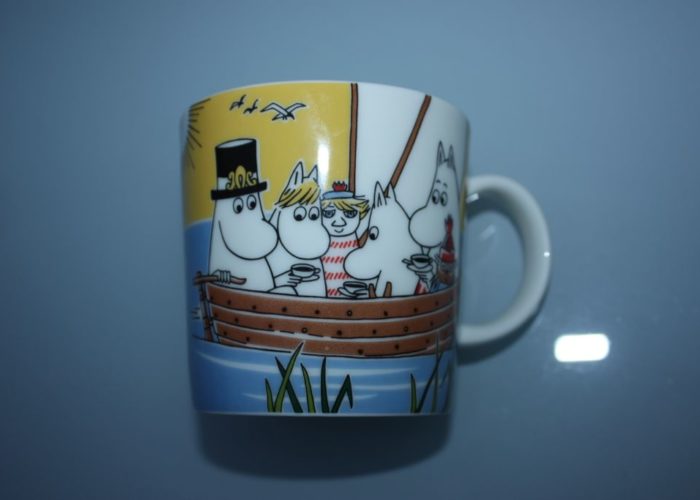 Sehr beliebt sind mittlerweile die Tassen. Jedes Jahr erscheinen ein oder zwei neue Motive, außerdem noch eine Sommer und eine Weihnachtstasse. Diese sind begehrte Sammlerstücke, da sie nur wenige Monate verkauft werden. Wahrscheinlich gibt es keinen finnischen Haushalt, in dem nicht wenigstens einige Mumin-Tassen im Schrank stehen.