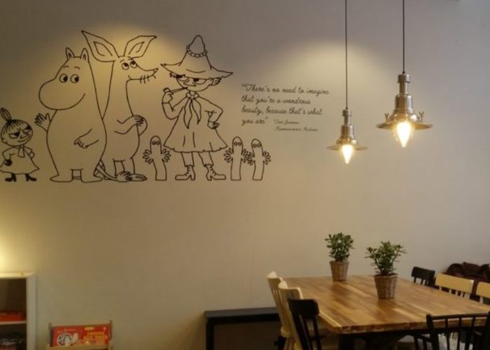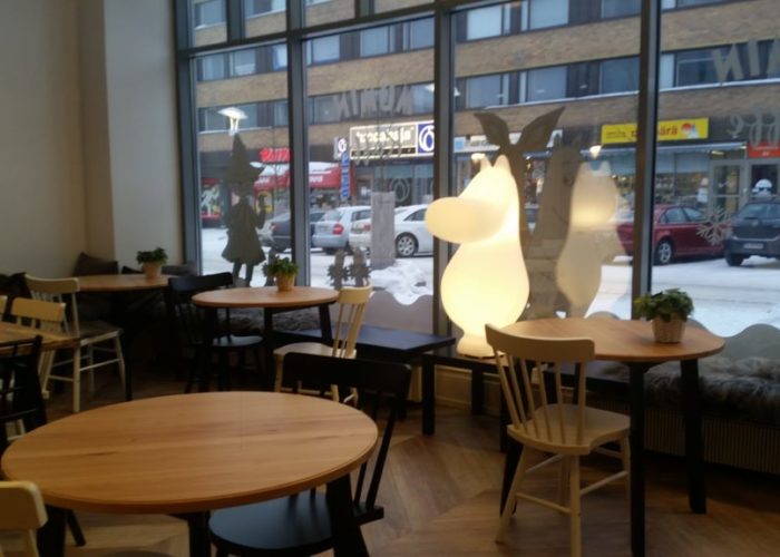 Die ursprüngliche Idee war, einen Ort zu schaffen, der gemütlich ist, sehr kinderfreundlich und auch ein bisschen in die Welt der Mumins eintaucht. So entstanden die Mumin-Cafés. Willkommen sind hier nicht nur alle Kinder, sondern auch erwachsene Muminfans. Die Cafés sind dekoriert mit Muminbildern und Figuren. Der Kakao wird natürlich stilecht in Muminbechern serviert. Für die Kinder gibt es extra Spielecken und in einem kleinen Shop kann man auch noch das eine oder andere Mumin-Andenken erstehen. Wer ill, kann mit seinen Freunden hier auch den Kindergeburtstag feiern.