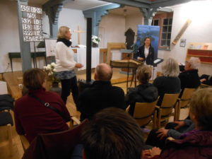 Die sympathische Musikerin begrüßte die Zuhörer in der voll besetzten Kirche. Zur Überraschung der Zuhörer begann sie mit einigen deutschen Worten bevor sie dann in die finnische Sprache wechselte.