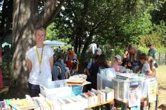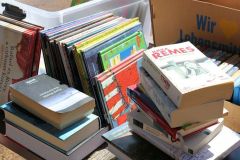 Leseratten und Finnischlerner konnten an den Büchertischen des Bücherflohmarkts nach spannendem Lesestoff aus Finnland sowie Literatur in Finnisch Ausschau halten. Außerdem konnten die Besucher Holzskulpturen wie Bären, Wichtel und Mumins von Holzkünstler Pentti Lepistö bestaunen. Für Groß und Klein veranstaltete die Finnisch-Deutsche Handelsgilde Frankfurt am Main ein kniffeliges Finnland-Quiz, bei dem jeder sein Finnlandwissen auf den Prüfstand stellen konnte. Zu gewinnen gab es finnischen Schmuck der finnischen Schmuckmarke Lumoava, kleine Kerzen und weitere schöne Preise.