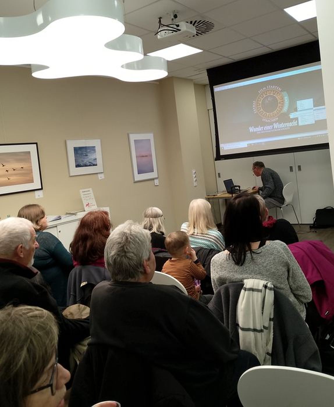 Eine Woche zuvor gab es auch schon die Gelegenheit, mit Finnland Bekanntschaft zu machen, denn da lief der finnische Familienfilm “Wunder einer Winternacht” im Rahmen der Filmabende in der Stadtbibliothek. In dem Film ging es um einen kleinen Jungen aus Lappland, der seine Familie bei einem Unglück verliert und fortan je ein Jahr bei einer Familie seines Dorfes aufgenommen wird. Tolle Landschaftsaufnahmen entführten die zahlreichen Besucher in die Winterwunderwelt Lapplands. Die Bezirksgruppe hatte Kotikalja vorbereitet sowie Lakritz und Roggenchips aus Finnland. Außerdem konnte die Fotoausstellung mit Finnlandfotos von Reiner Leopold besichtigt werden.