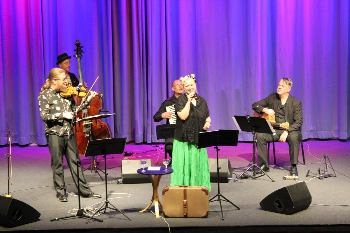 Mit einem abwechslungsreichen musikalischen Set entführten Laura Ryhänen und ihr Ensemble das Wiesbadener Publikum in die Welt der finnischen Tanzmusik der 1930er- bis 1960er-Jahre. Dabei wechselten melancholische Interpretationen finnischer Tangoklassiker wie Satumaa (Märchenland) mit flotten, finnischen Rhythmen wie “Käpylä kutsuu” oder “Töölön foxi”.
