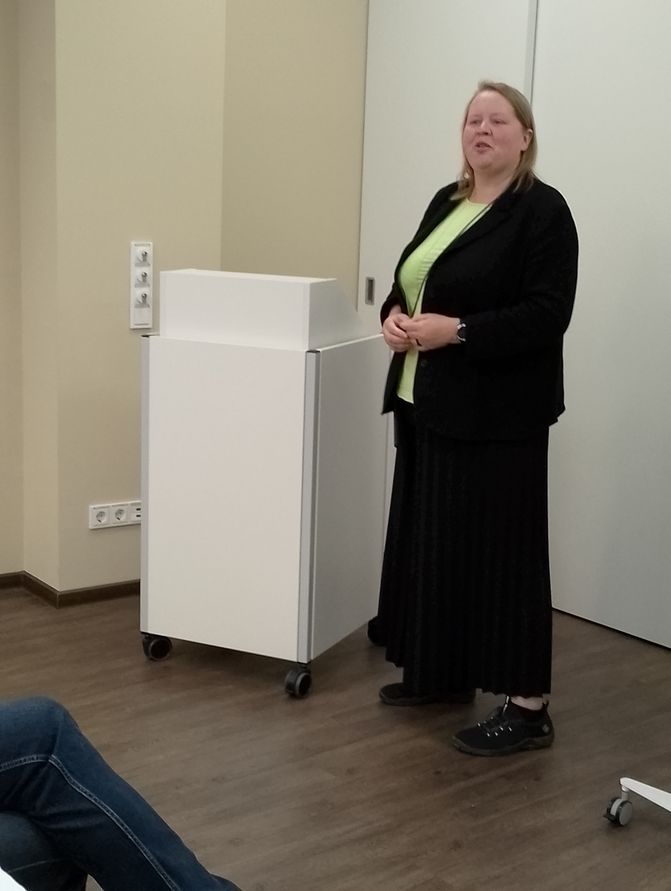 Zunächst begrüßte die Bezirksgruppenvorsitzende und stellvertretende Vorsitzende der Bundes-DFG, Alexandra Bernhardt, die zahlreich erschienenen Besucher. Sie stellte die Arbeit der DFG vor und informierte die Zuhörer über das vielfältige Programm der DFG. Viele hörten zum ersten Mal, dass es ein Gastschülerprogramm gibt und regelmäßig Tourneen durch Deutschland für finnische junge Künstler organisiert werden.