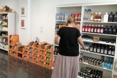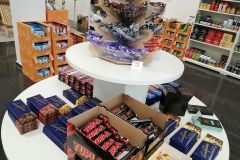 Danach begeben wir uns auf Entdeckungsreise und Shoppingtour. Alles können wir nicht aufzählen, dazu gibt es zu viele Artikel. Für uns wichtig ist die Schokolade von Fazer, von der es reichlich Auswahl gibt. Auch Kekse, Lakritz und verschiedene Pastillen findet man. Finnischen Kaffee, den leckeren Frühstücksbrei und Dosen mit Rentier- oder Bärenfleisch erblicken wir ebenso wie mehrere Sorten finnischen Senfs. Natürlich sind auch Artikel rund um die Sauna verfügbar und viele Getränke. Koskenkorva, Minttu, Salmiakki und verschiedene Sorten  finnischen Bieres runden das Angebot ab.