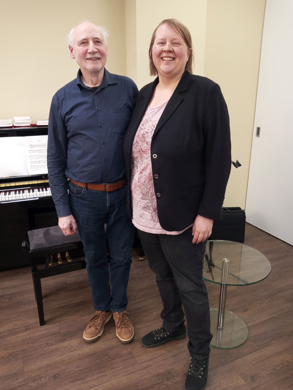 20240308_185715 (Foto: G.Bernhardt) Finnbuch-Autor Eberhard Apffelstaedt mit der DFG-Vorsitzenden Alexandra Bernhardt E.Apffelstaedt und A.Bernhardt