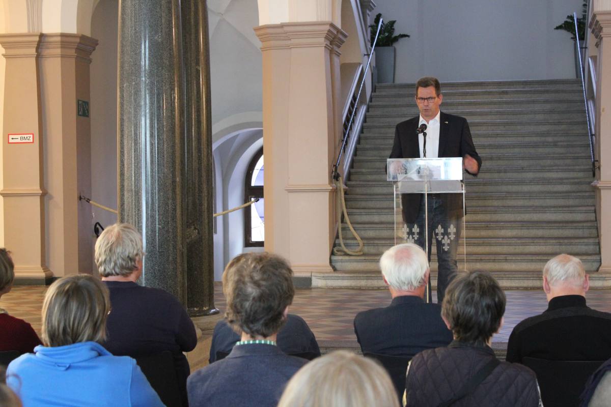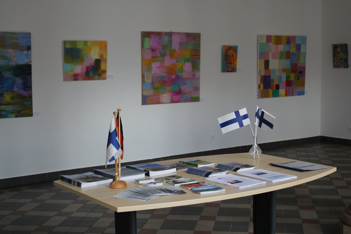 Gestern haben wir gemeinsam mit den drei beteiligten Künstlern Reiner Leopold, Riitta Soini und Dirk A. Reimann sowie geladenen Gästen unsere Ausstellung zu finnischer Kunst im Wiesbadener Rathausfoyer eröffnet, die Teil unseres schönen Kulturprogramms “Finnland kulturell erleben” ist. Die Laudatio hielt der bekannte Finnbuchautor Eberhard Apffelstaedt.