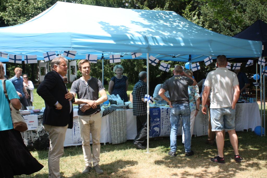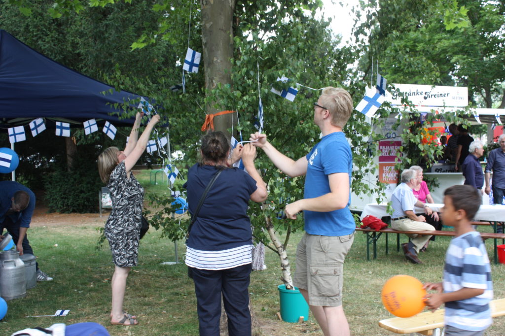 Anlässlich des 100. Jahrestags der Unabhängigkeit Finnlands organisierten verschiedene Verbände und Vereine mit Finnlandbezug am Sonntag, 25. Juni 2017, ein gemeinsames Mittsommerfest in Frankfurt. Auf dem Außengelände des Museums für Angewandte Kunst (MAK) trafen sich Finnen und Finnlandfreunde sowie Interessierte, die die Gelegenheit nutzten, um sich über Finnland zu informieren.