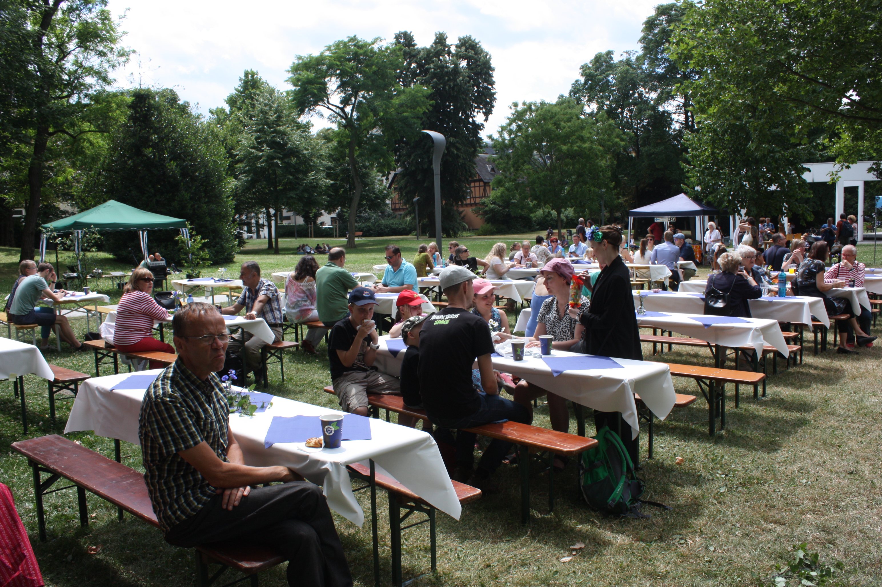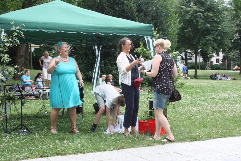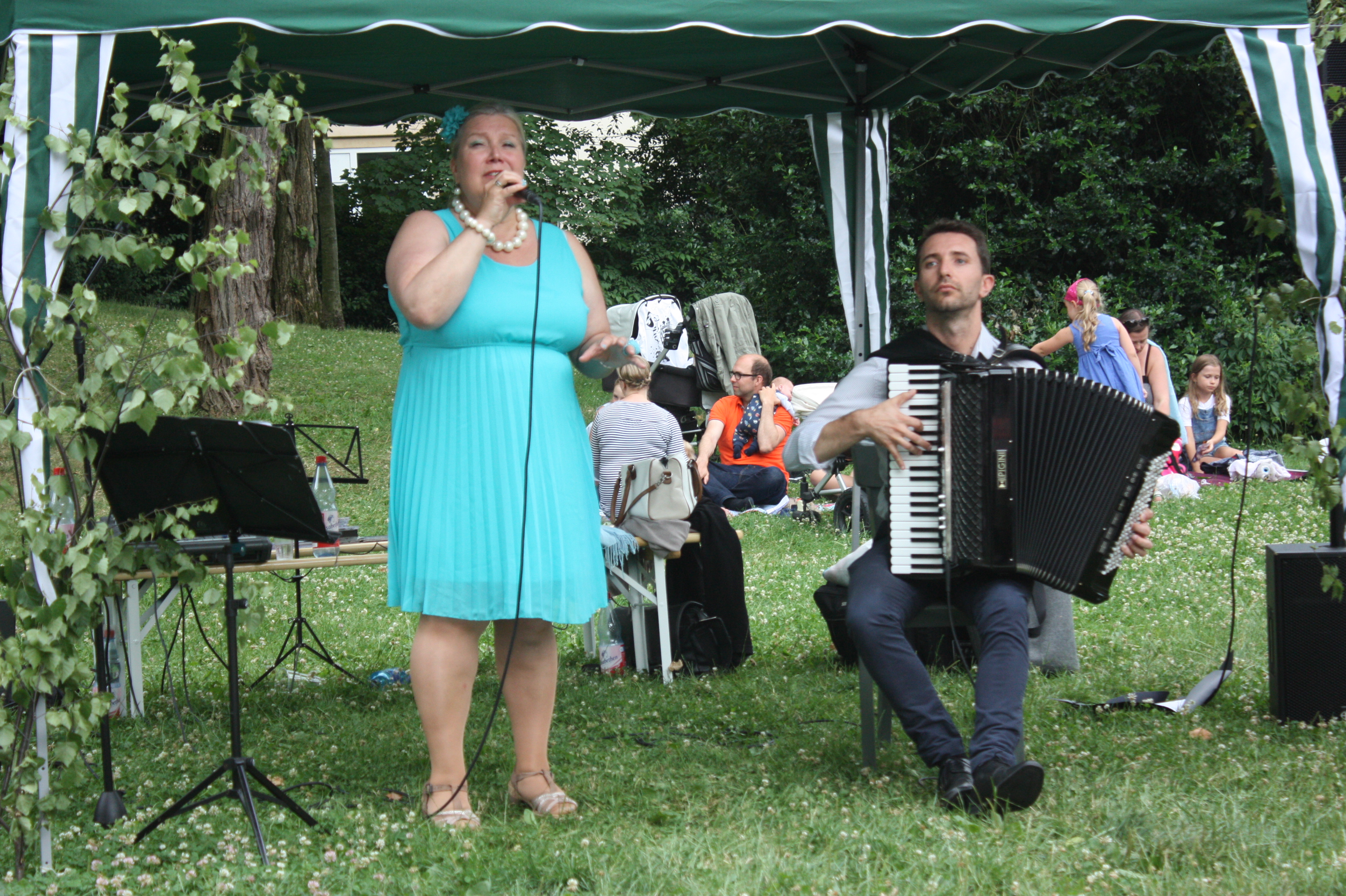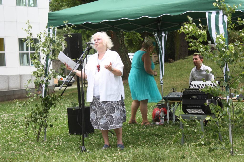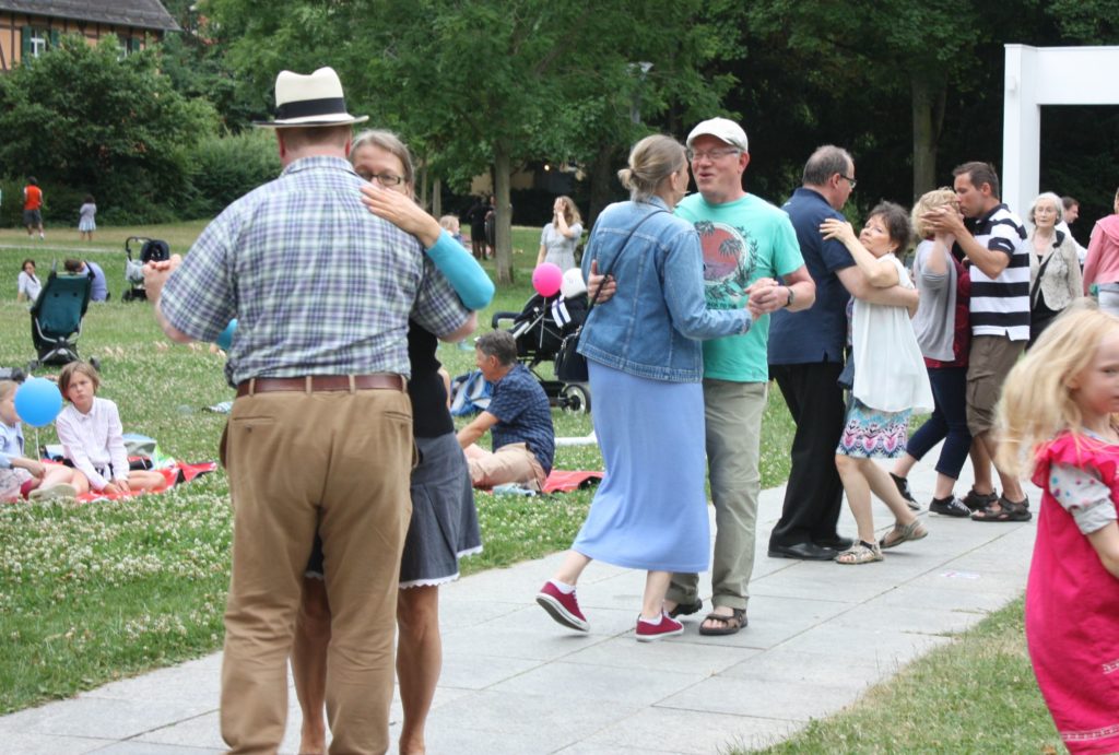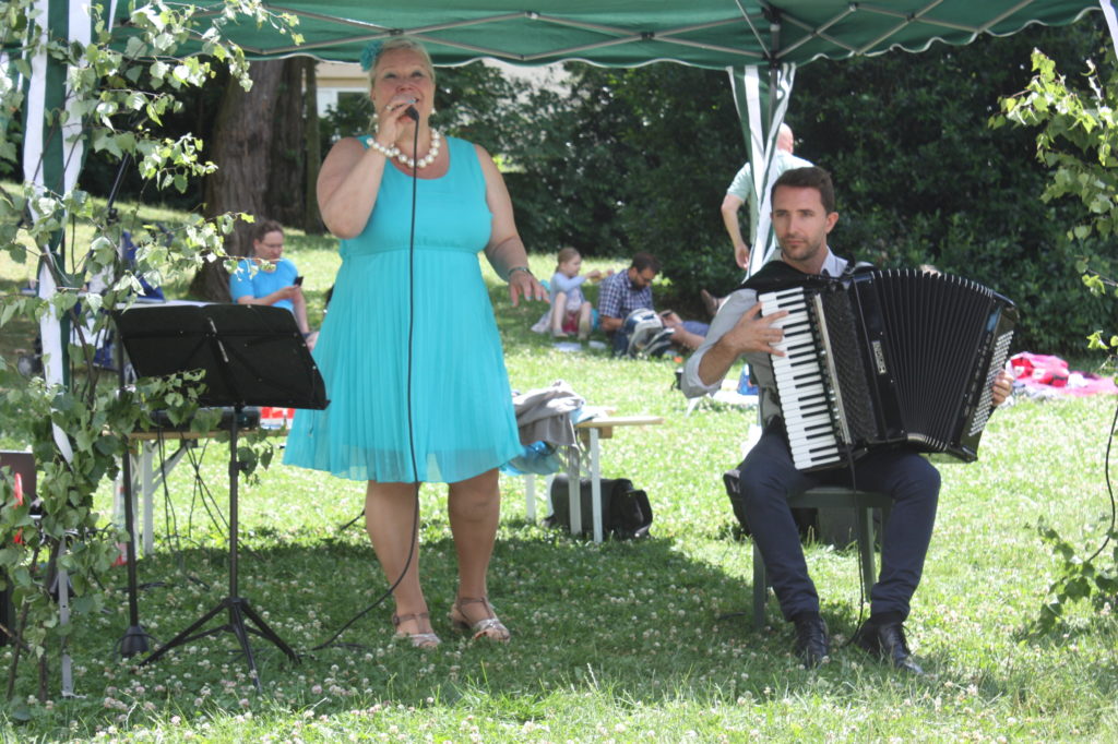 Musikalisch wurde der Nachmittag zu einem großen Teil von Tuija Komi und ihrem Partner Vladislav Cojocaru gestaltet. Als Duo Jazzango traten sie während des Nachmittags dreimal auf und präsentierten ihreMusik, z.B. von ihrer neuen CD “Satumaa – Midsummer Jazz Tango aus Finnland”. Neben Libertango und Pink Panther gab es auch brasilianischen Samba und argentinischen Tango zu hören. Einige der Besucher nutzten die Musik auch für einen kleinen Mittsommertanz.