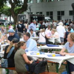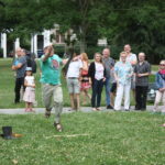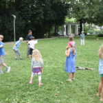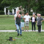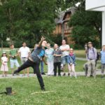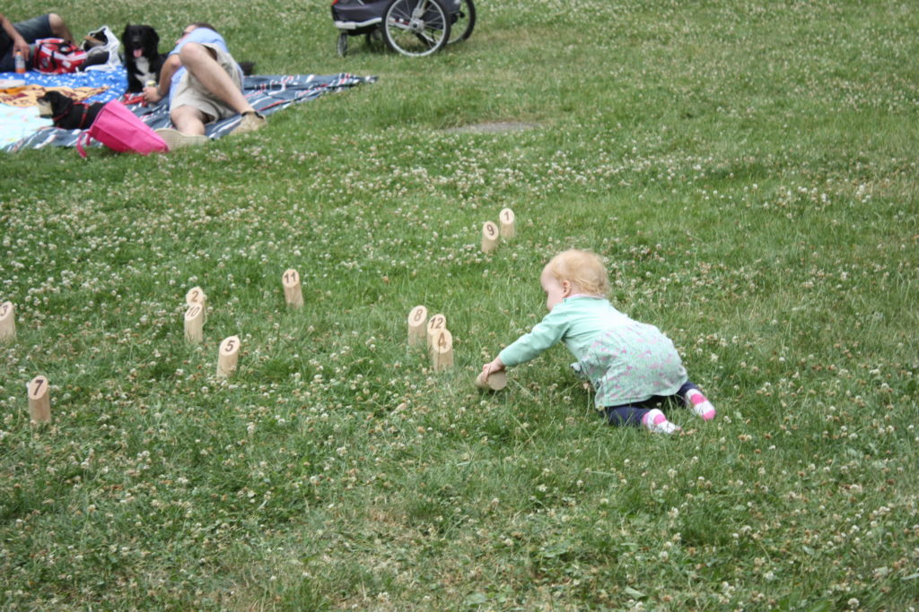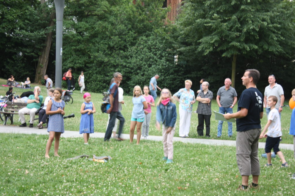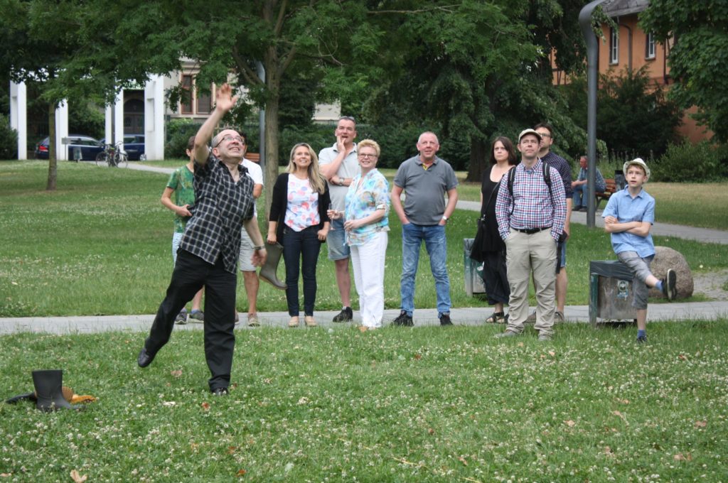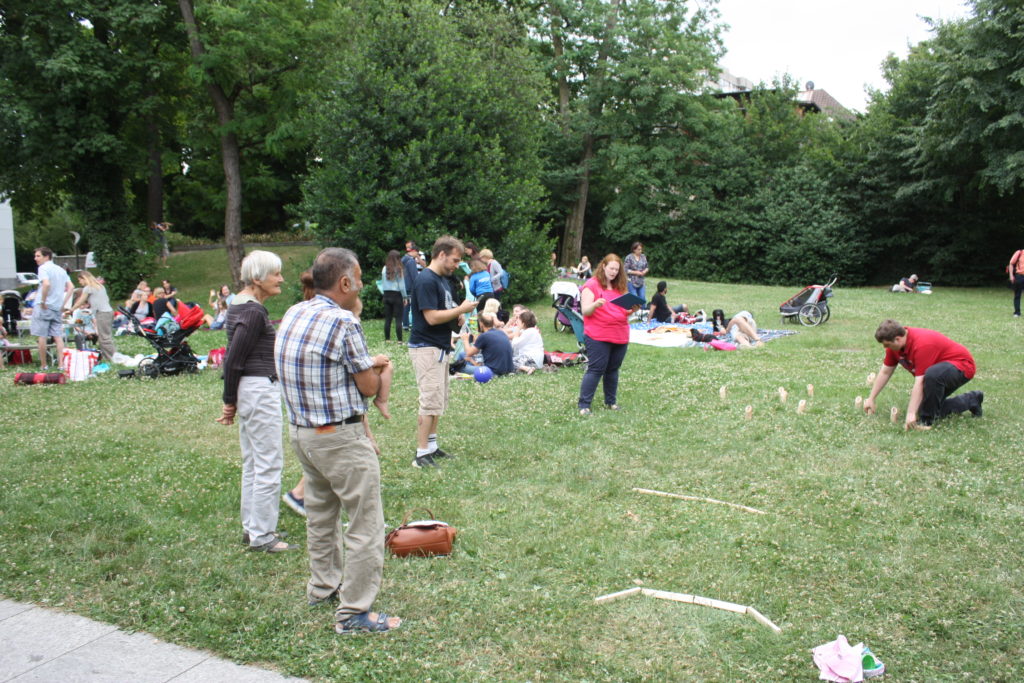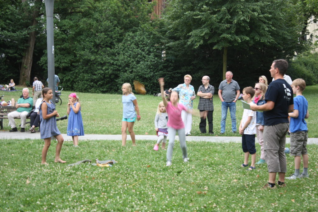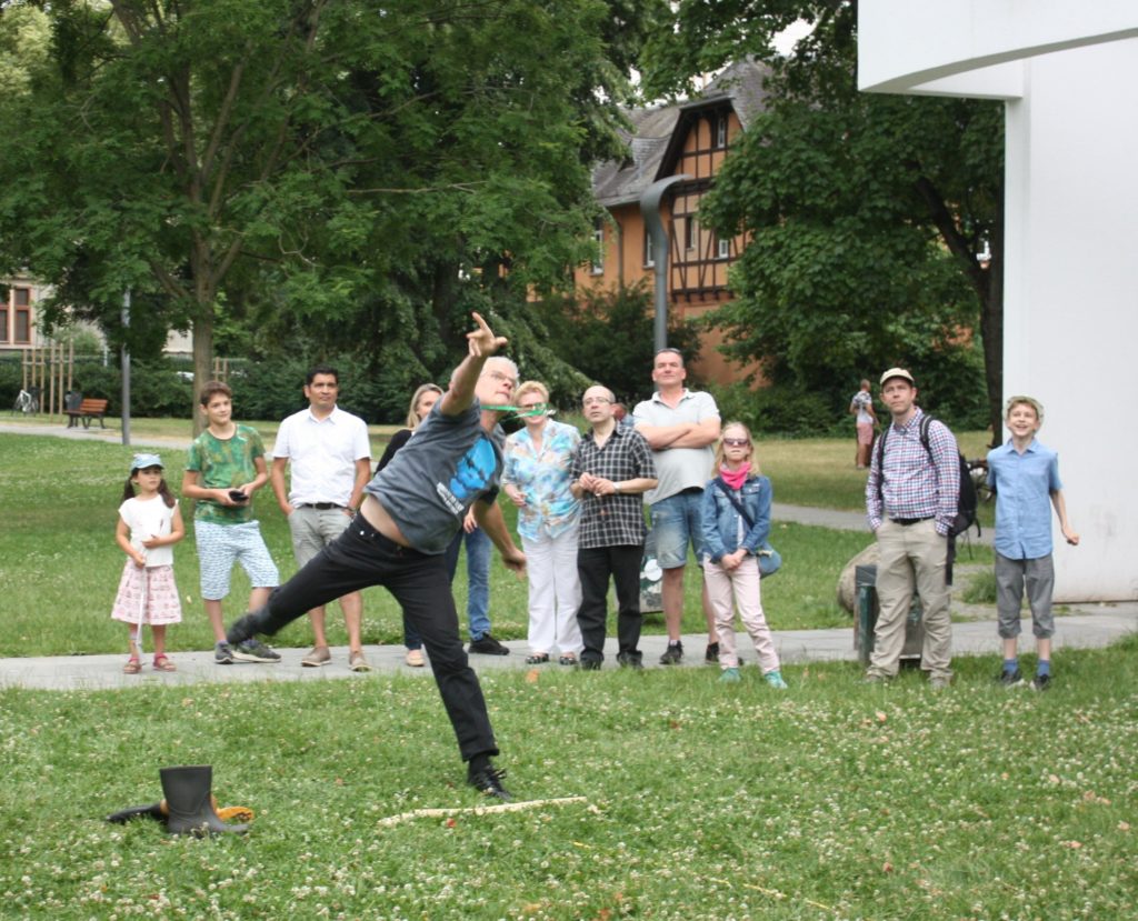 Was wäre ein finnisches Sommerfest ohne irgendwelche mehr oder weniger verrückten Wettbewerbe? Und so gab es auch in Frankfurt die Möglichkeit, das beliebte finnische Wurfspiel Mölkky auszuprobieren oder sich im Gummistiefelweitwurf zu messen. Hier herrschte großer Andrang in den drei Kategorien: Kinder, Frauen und Männer. Bei den Männern warf der Sieger stolze 25 Meter weit, was die große Zuschauerschar kräftig beklatschte!