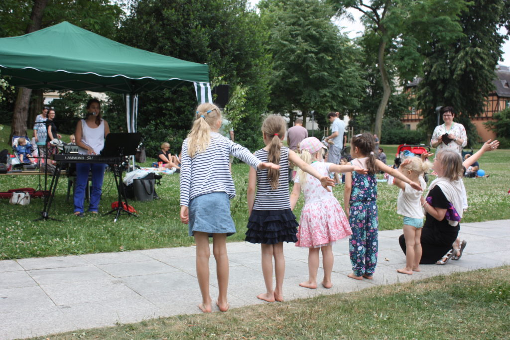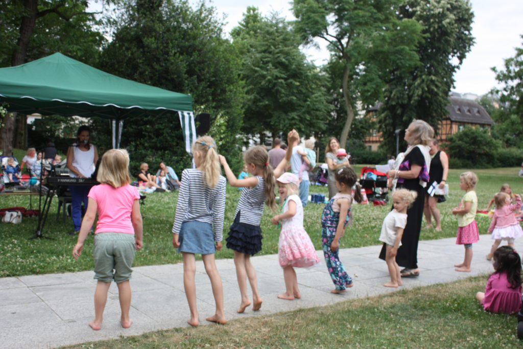 Tanzpädagogin Suvi Mauer animierte die kleinen Gäste mit ihren Kinderliedern. Bei huugi-guugi, Siili severi oder Viikonpäivät konnten die Kleinen zeigen, wie sie Arme und Beine passend zum Text koordinieren konnten. Viel Beifall gab es auch für die Sängerin Hanna Purho, die, begleitet von Pianist Horst Wilhelm, den Festbesuchern mit ihrem einfühlsamen Gesang die finnische Mittsommerstimmung näher brachte.