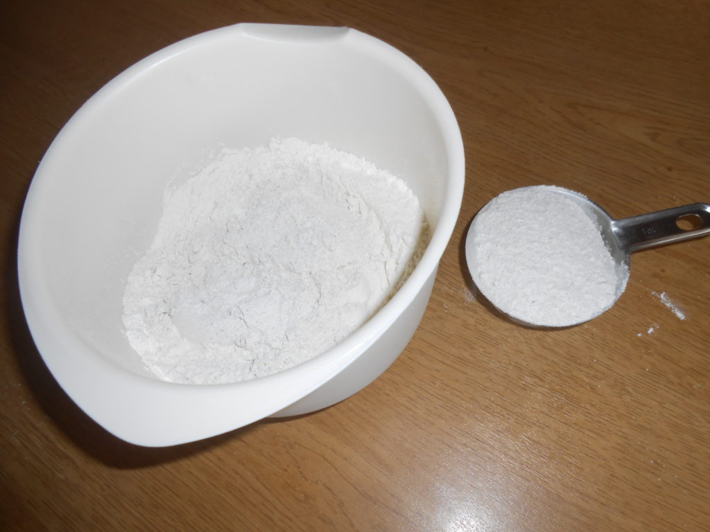 G.Bernhardt: Das Roggen- und Weizenmehl wird in einer Schüssel gemischt.