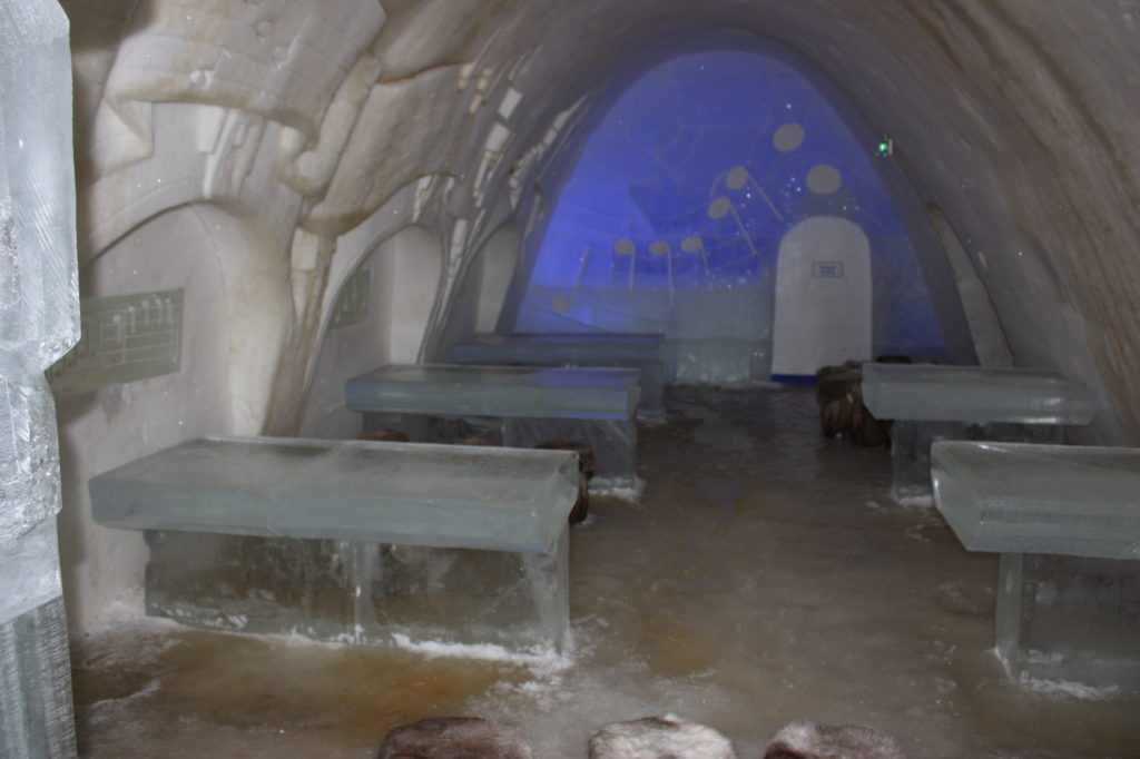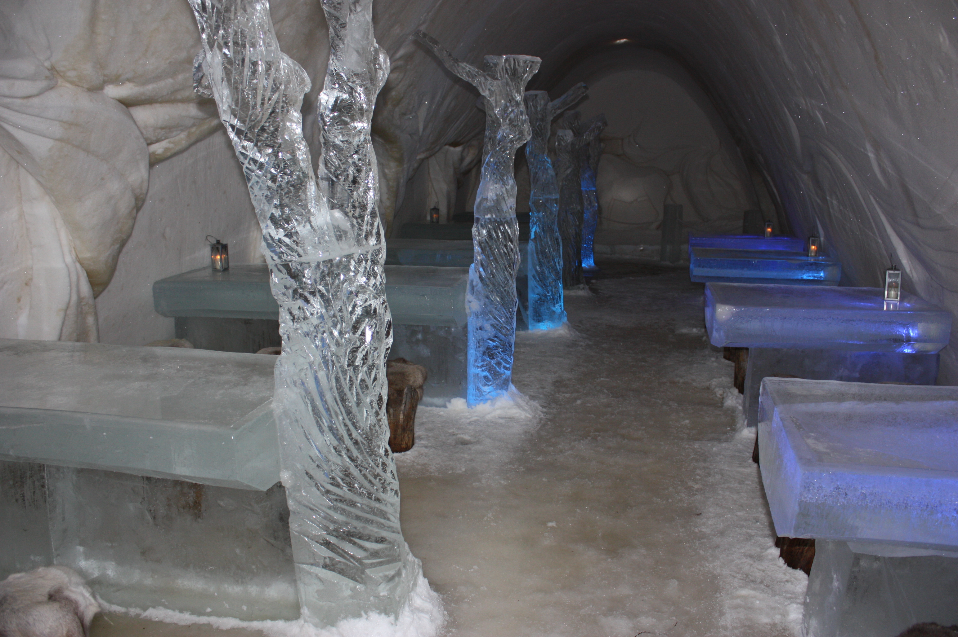 Das Restaurant öffnet ab dem 27.12.2018 täglich . In der Eisbar kann man einen kalten oder warmen Drink aus einem Eisbecher zu sich nehmen und im Restaurant am Eistisch genüsslich speisen, während ringsumher das bunte Licht ein bizarres Farbenspiel an die Wände wirft. Wenn es draußen -30°C kalt ist, sind die -5°C Innentemperatur fast schon mollig warm! Trotzdem sollte man neben warmen Schuhen Handschuhe und Mütze nicht vergessen.