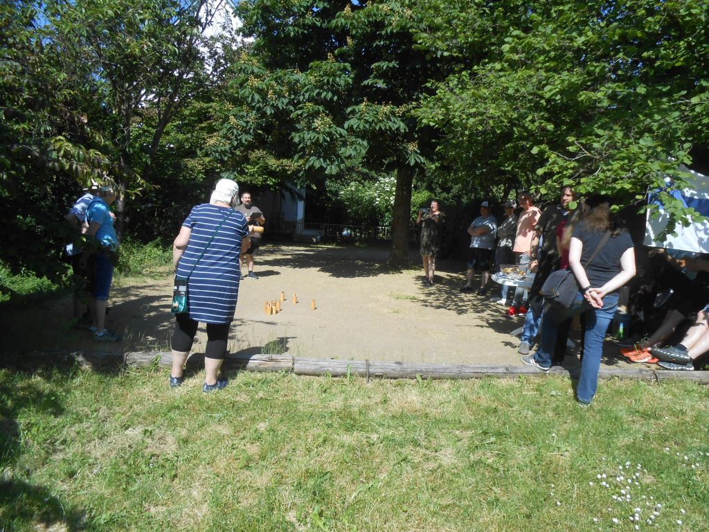 Geocaching Event 3 6 23 (G.Bernhardt) Viel Spaß hatten die Geocacher beim ersten Mölkky-Event Geocacher spielen Mölkky