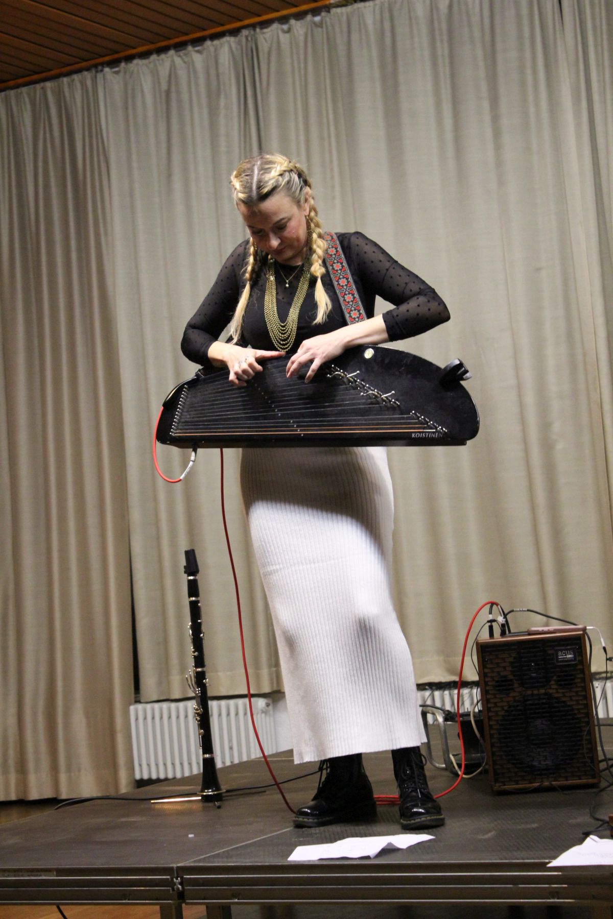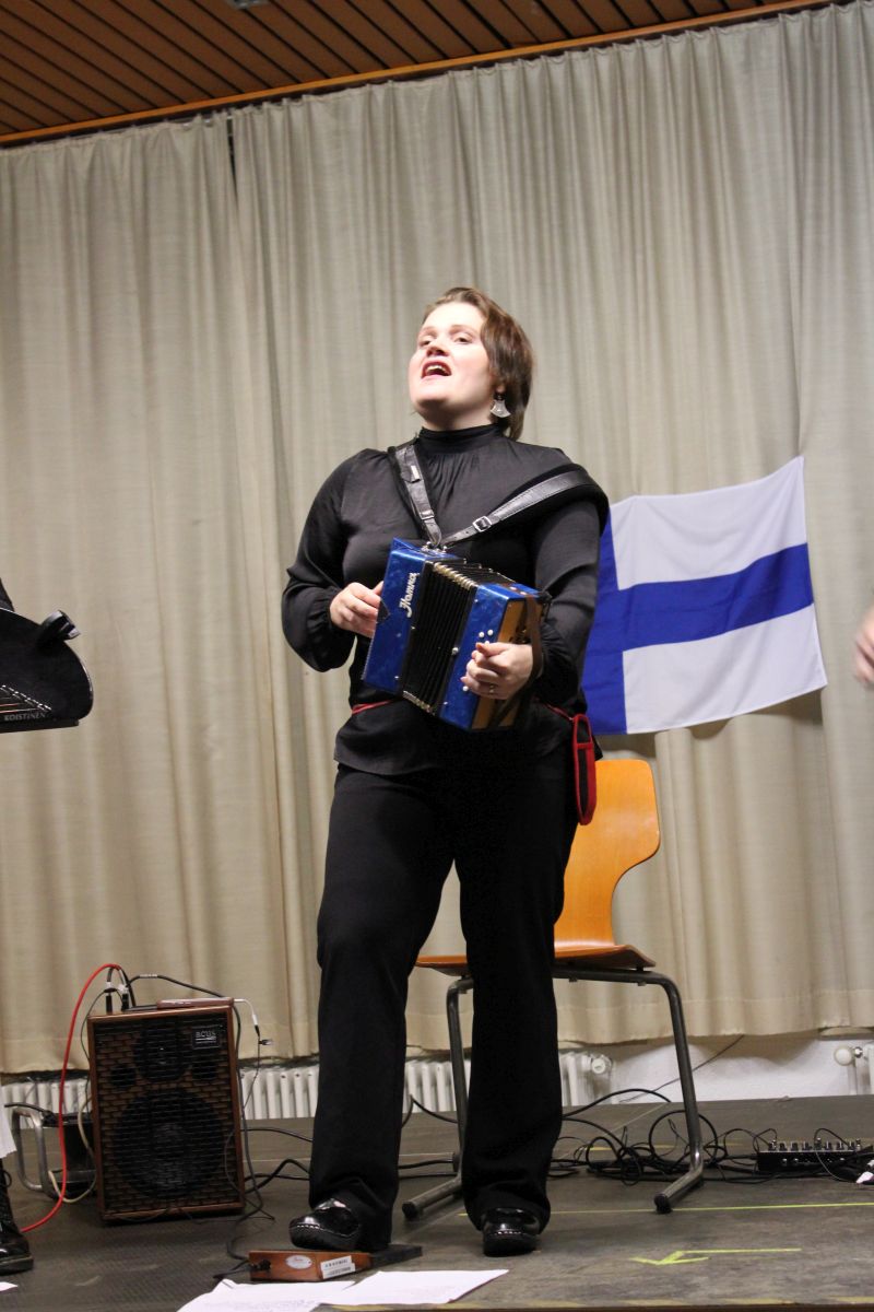 Das Repertoire von Kivimäki und ihrem Ensemble umfasste an diesem Abend neben eigenen Kompositionen für Kantele, Klarinette, Kontrabass und Akkordeon auch bekannte traditionelle Stücke wie die Finlandia, eine symphonische Dichtung des berühmten, finnischen Komponisten Jean Sibelius, die den Finnen auch als inoffizielle Hymne Finnlands bekannt ist.