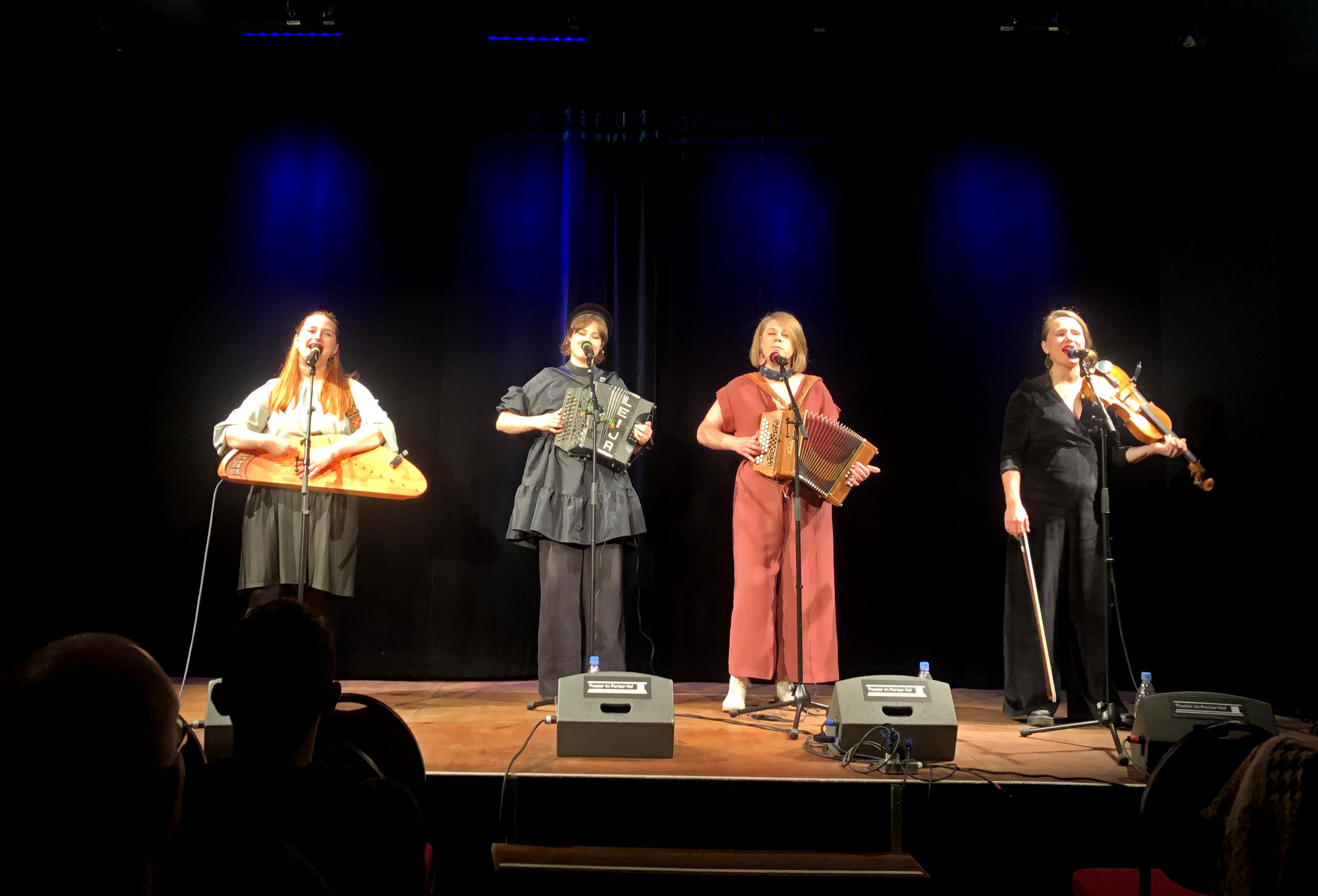 Derzeit tourt die finnischen Folkband ENKEL auf Einladung der Deutsch-Finnischen Gesellschaft durch Deutschland. Am vergangenen Dienstag waren die vier Power-Ladies zu Gast in Wiesbaden und begeisterten im Rahmen des Kulturprogramms der DFG Hessen “Finnland kulturell erleben” das Publikum im Theater im Pariser Hof mit einer unterhaltsamen und abwechslungsreichen Mischung traditionell, finnischer Folk-Klänge. Dabei wechselten sich ruhige, träumerische Kantele-Melodien mit schwungvoller, finnischer Polka ab, die immer wieder auch mit traditionellen Tanzelementen angereichert wurden. Denn die vier Folk-Ladies aus Finnland sind bekannt dafür, ihrer Musik durch eine kreative Kombination aus Instrumenten, Stimmen und Tanzelementen ihren unverwechselbaren, powervollen ENKEL-Touch zu verleihen.