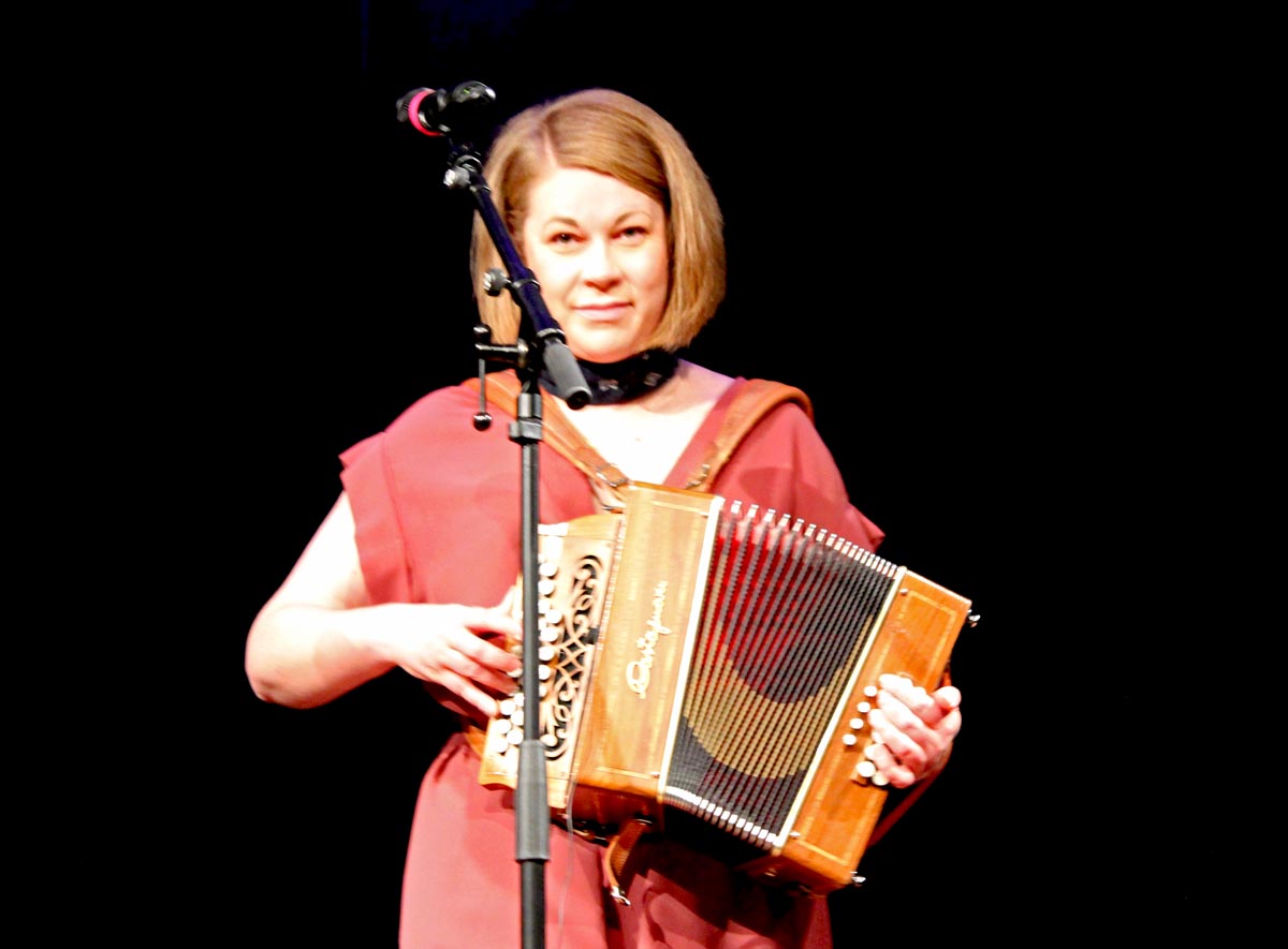 Beim Song “Tuu illalla” (Come honey, come!) vom zweiten Album “We are ENKEL” (2018) wurde das Publikum von den vier Musikerinnen dazu animiert, den Refrain mitzusingen, dem das Publikum begeistert nachkam. Bewegend war auch der Song “Siskoille” (Für meine Schwestern). Das Lied beruht auf einer traditionellen Melodie aus Kauhava, einer Stadt in der Landschaft Südösterbotten, im Südwesten Finnlands. Die Lyriks stammen von der finnisch-amerikanischen Frauchenrechtlerin Hanna Lehtinen aus dem Jahr 1912. Sie lebte in New York und war auch in der Frauenrechtsbewegung aktiv. In diesem Song rief sie alle mutigen und starken Frauen dazu auf, sich zu organisieren und für Bildung und Gleichberechtigung zu kämpfen. Als Zugabe gab die Band den selbstgeschriebenen, heiteren Song Tömpsyt (Cheers!) von ihrem ersten Album Pappilan Hääyö (2016) zum Besten, wonach die vier Musikerinnen mit viel Applaus vom begeisterten Wiesbadener Publikum verabschiedet wurden.