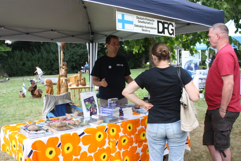 Sommerfest Frankfurt Infostand Gemeinsames Sommerfest der finnischen Vereine in Hessen in Frankfurt zum 100. Jahrestag Finnlands 2018 Sommerfest in Frankfurt
