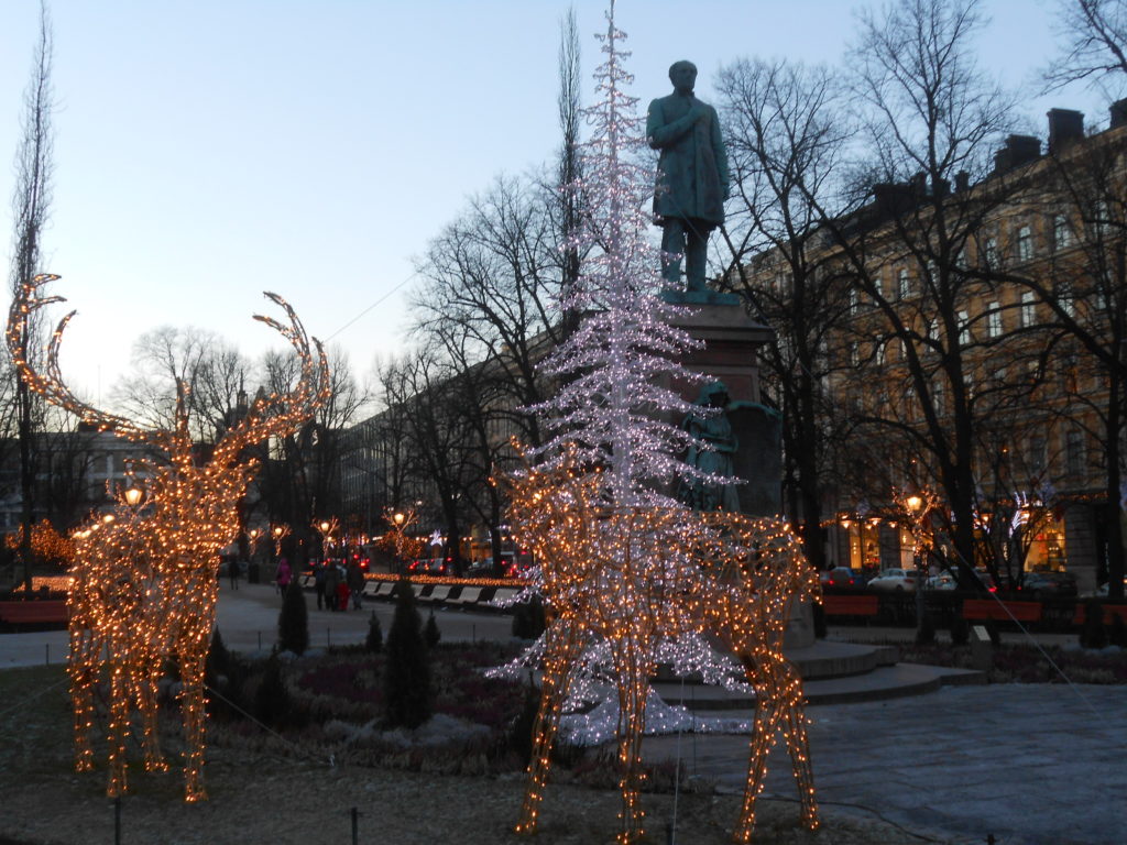 Im Esplanadi-Park haben sich 2 Rentiere und ein Tannenbaum zur Statue von Finnlands berühmten Dichter Johann Ludwig Runeberg gesellt und das Kamppi-Einkaufscenter erstrahlt in rot mit einer riesigen Schleife. Kindermassen zieht das Kaufhaus Stockmann an, dessen großes, aufwändig gestaltetes Weihnachtsfenster die gesamte Familie fasziniert.