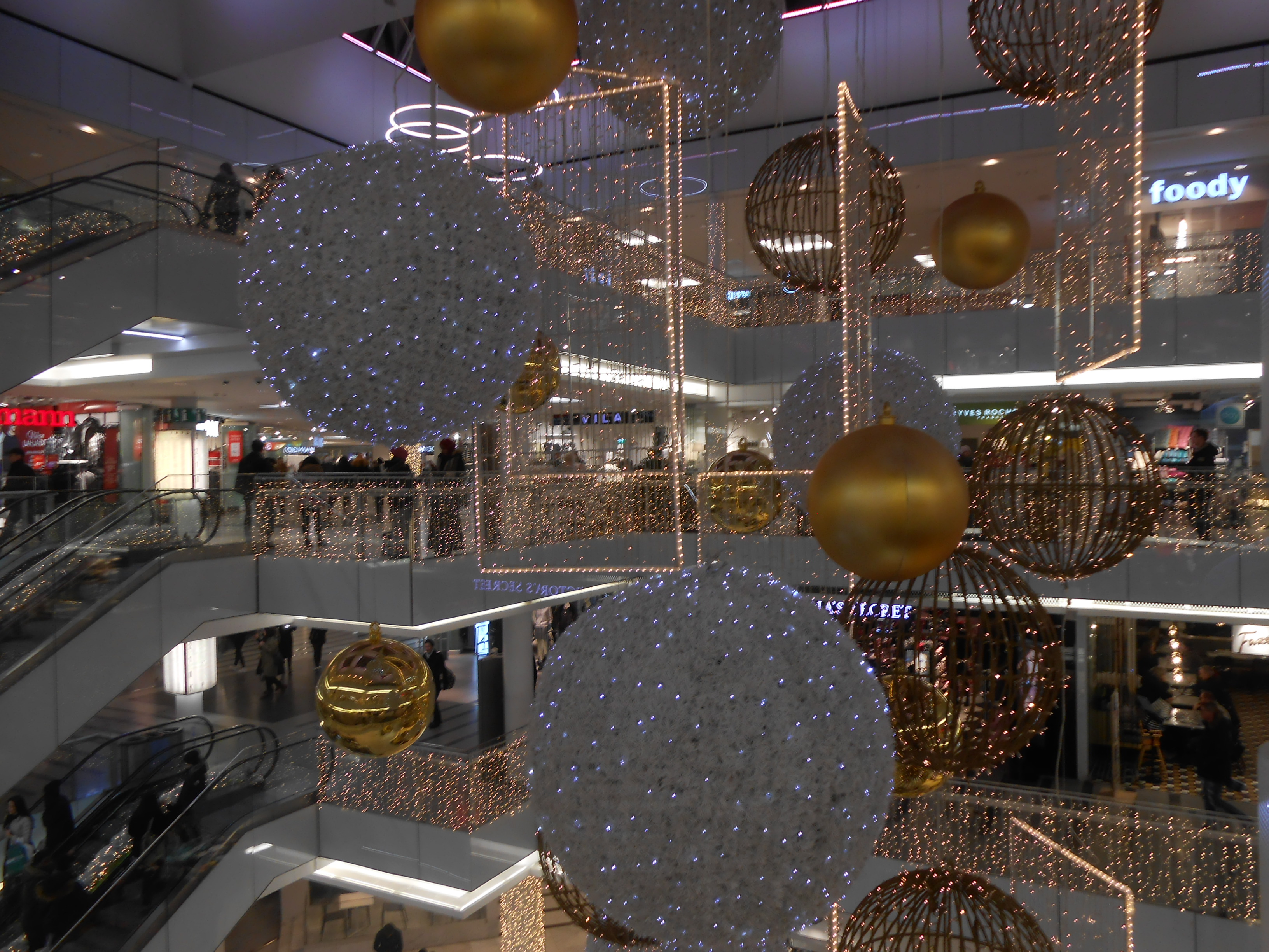 Und im Forum-Einkaufszentrum leuchten unzählige weiße und braune Kugeln um die Wette.