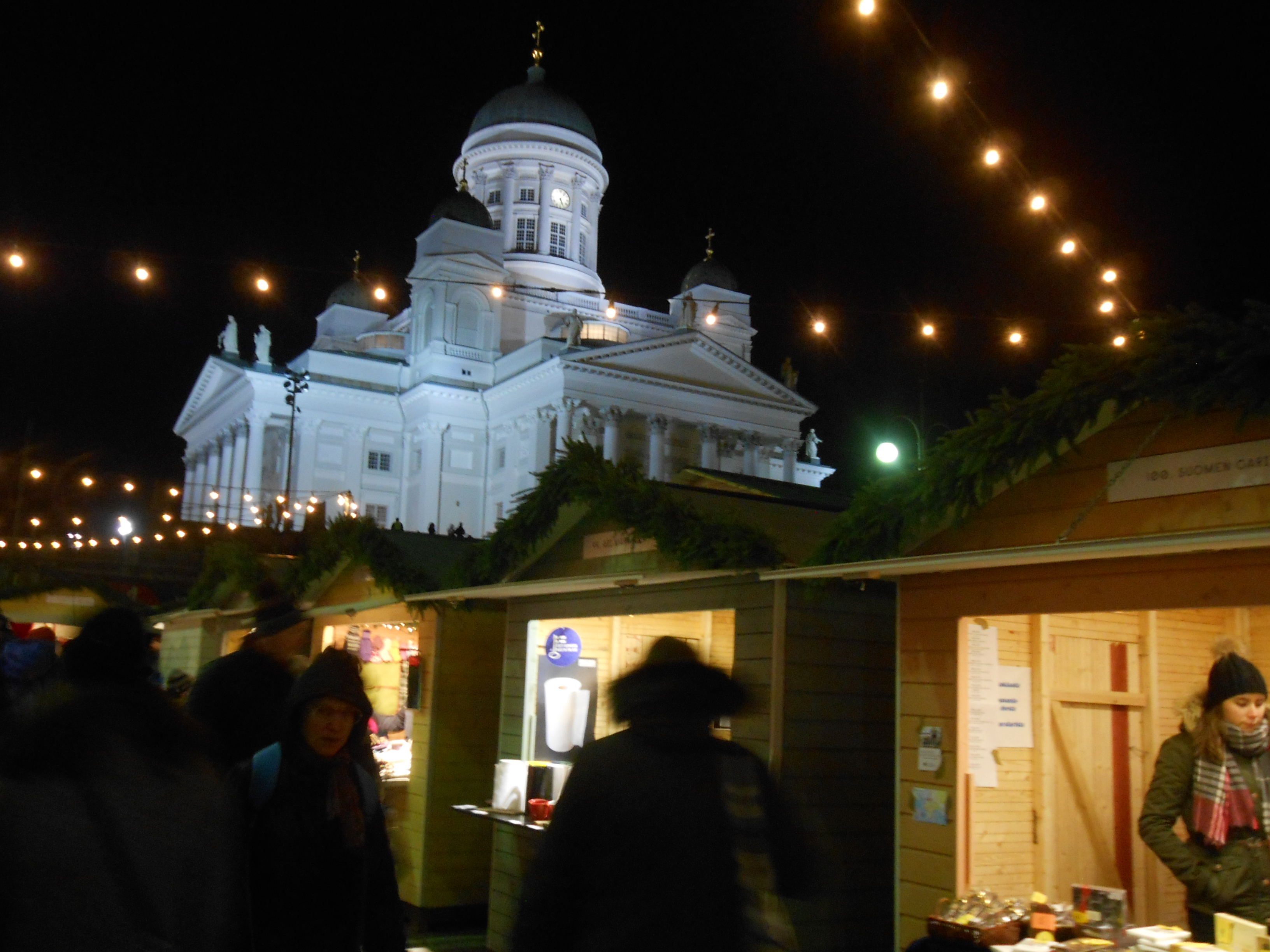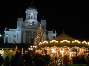 Auf dem Senaatintori ist seit dem 4.12. der große Weihnachtsmarkt geöffnet. Viele festlich geschmückte Buden laden zu Füßen des Doms zu einem gemütlichen Bummel ein.